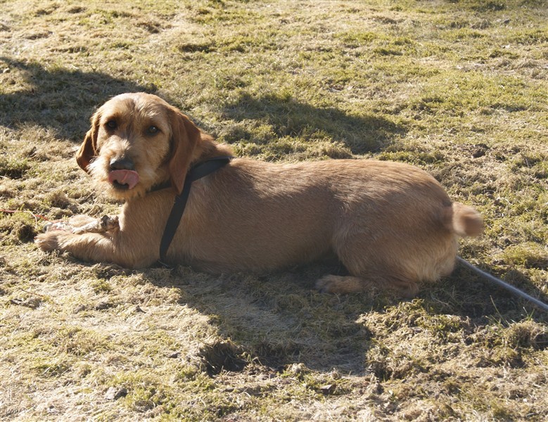 Lördagen den 14 maj var Flinga med på Viltspår-DM i Basset väst. Det var elva ekipage anmälda men det var inte riktigt Flingas dag. Hon tyckte att ett älgspår på andra sträckan var väldigt spännande så där fick det bli ett ingripande. Efter det klarade hon av uppgiften utan några större problem och hon fick därför en 2:a av domare Roger Skoglund idag. Även brorsan Simba (SE VCH Arri) fick idag en 2:a. Flinga skrattar gott åt resultatet och fotografen Yvonne Jyborn.