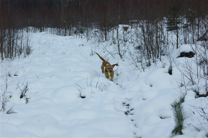 Flinga efter en lyckad spårrunda, trots att snön kom efter att spåret var lagt (27 mars 2011).